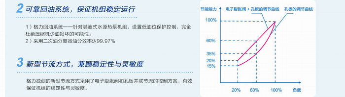 格力獨創的新型節流方式采用了電子膨脹閥和孔板并聯節流的控制方案,有效保證機組的穩定性與靈敏度。
