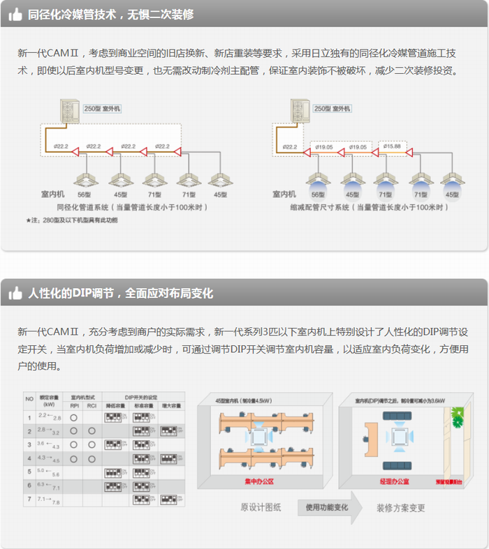 獨有的同徑化冷媒管道施工技術,將來如果室內機型號變更,不需改動制冷劑主配管,保證室內裝飾不被破壞,減少二次裝修投資。