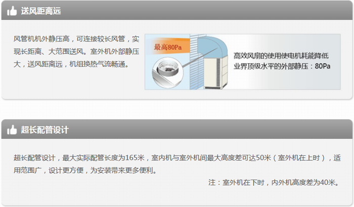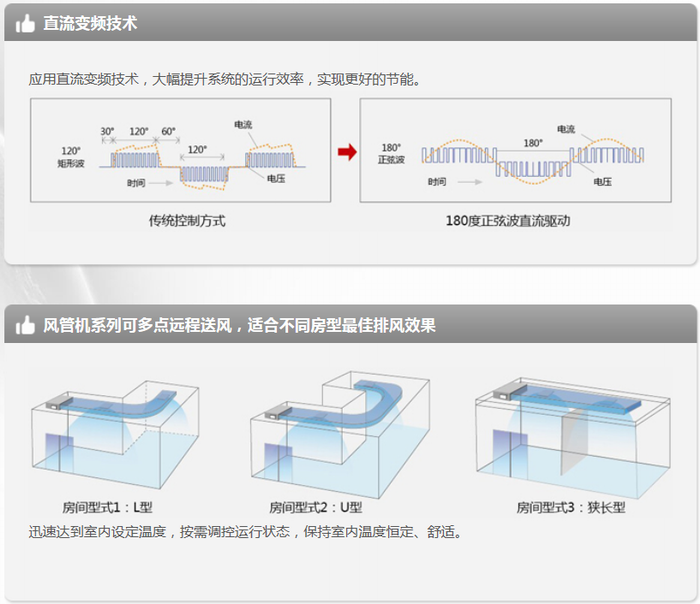 日立高效勁風系列采用直流變頻技術,高靜壓設計,送風量大、送風距離遠且可引入新風,可滿足生產車間、大型商超等密集人群場所的空調使用要求。