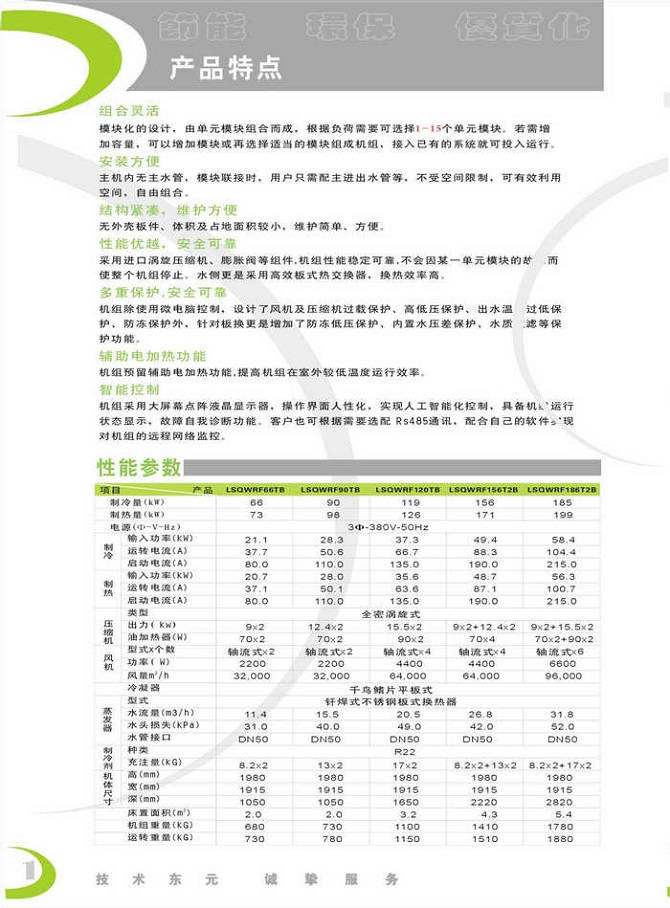 東元風冷模塊機(65KW-130KW),風冷模塊機組是以空氣為冷(熱)介質,作為冷(熱)源兼用型的一體化中央空調設備。機組具有他高效、低噪音、結構合理、操作簡便、運行安全、安裝維護方便等優點,廣泛應用于賓館、商場、辦公樓、展覽館、機場、體育館等公共設施的舒適性中央空調系統,并能滿足電子、制藥、生物、輕紡、化工、冶金、制藥、電力、機械等行業的工藝性的空調系統的不同使用要求。