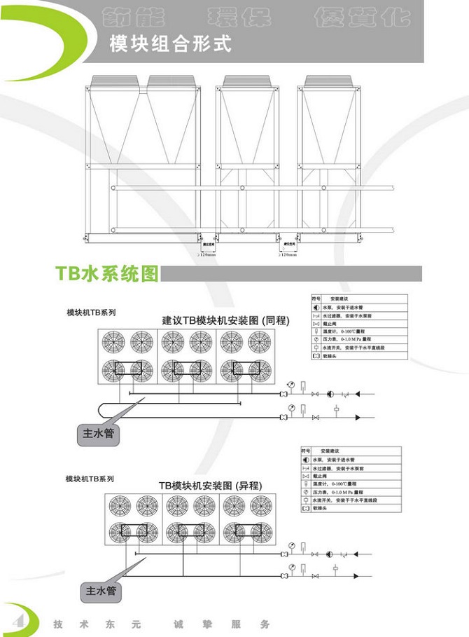 模塊化的設計,由單元模塊組合而成,根據負荷需要可選擇1-15個單元模塊。若需增加容量,可以增加模塊或再選擇適當的模塊組成機組,接入已有的系統就可投入運行。