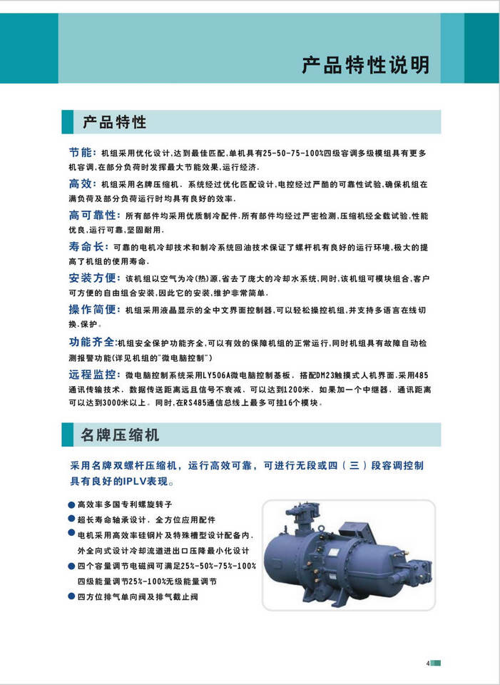 東元風(fēng)冷螺桿式冷水機組產(chǎn)品特點:132KW-2160KW
